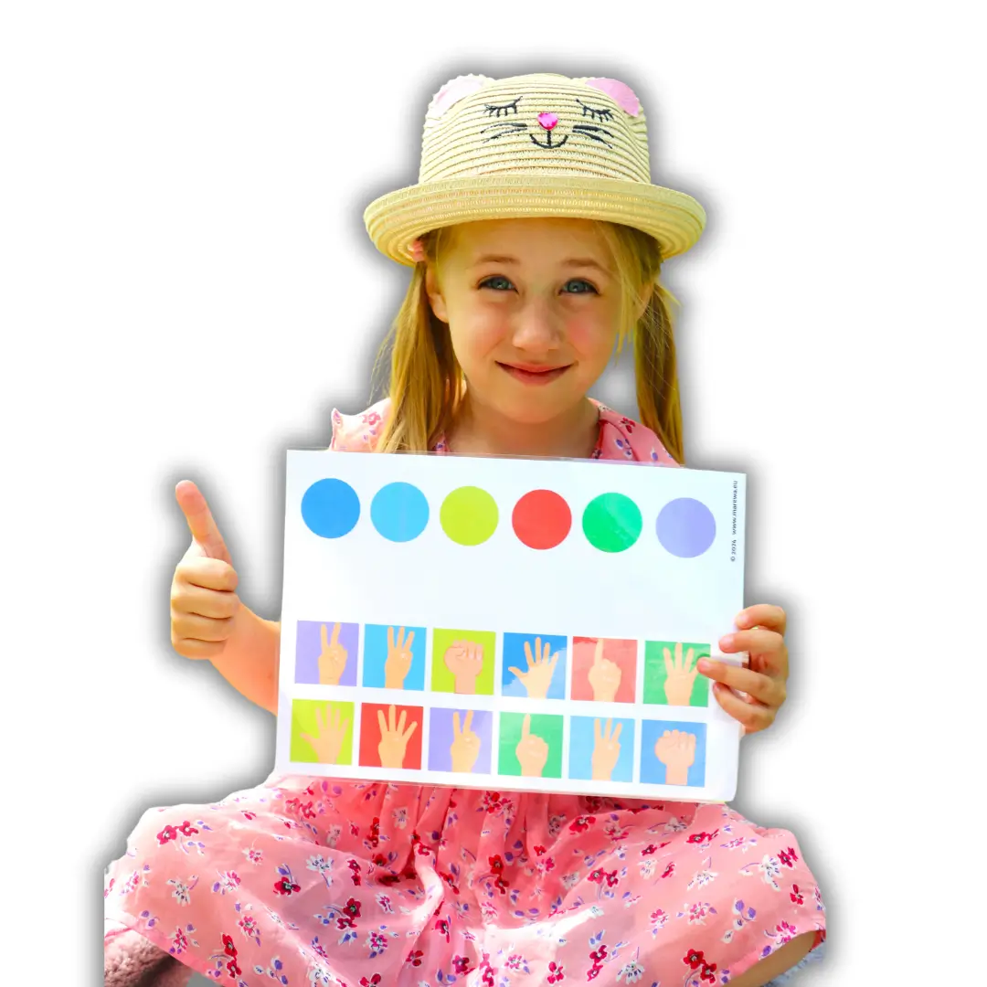 - Plik do zadania wyświetlający kolory – Interaktywny plik, który wyświetla kolory na ekranie.Dziecko ma za zadanie dopasować kolory z pliku do NeuroKarty, co wspiera rozwijanie umiejętności koordynacji oko-ręka.